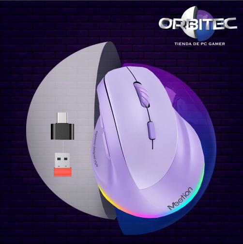 El Meetion BTM010R Lila es un mouse ergonómico inalámbrico diseñado para ofrecer comodidad y funcionalidad en cada uso. Su diseño vertical reduce la fatiga de la muñeca, mientras que su conectividad dual y retroiluminación RGB añaden versatilidad y estilo.