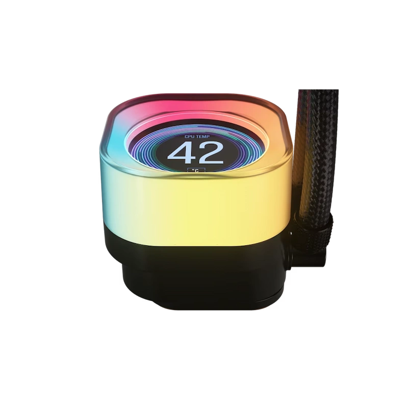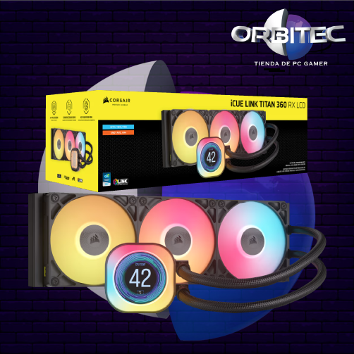 El CORSAIR iCUE LINK TITAN RX LCD ofrece una refrigeración ultrasilenciosa de alto rendimiento con rendimiento térmico y conectividad iCUE LINK optimizados, además de iluminación RGB dinámica.